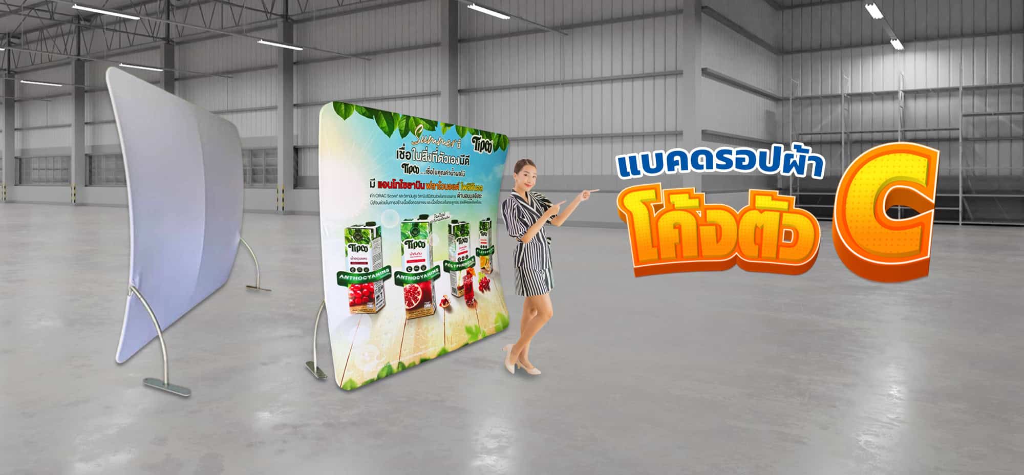 Backdropผ้า แบ็คดรอปผ้าตัวซี, FABRIC BACKDROP C Backdropผ้าแบบพิเศษ เป็นฉากหลังที่ได้รับความนิยมในงานแสดงสินค้าหรืองานอีเวนต์ ด้วยดีไซน์โค้งมนที่ช่วยเพิ่มความอลังการให้กับบูธ พร้อมทั้งสร้างมิติให้ดูสวยงามสะดุดตา รูปลักษณ์สวยงาม เสริมภาพลักษณ์บูธให้โดดเด่นและแตกต่างจากแบบดั้งเดิม แบ็คดรอปผ้าโค้ง จากบนลงล่าง ทำให้ แผงนิทรรศการ,แผงประชาสัมพันธ์,แผงแบ็คดรอป,แบ็คดรอปผ้า,บูธผ้า ดูน่าสนใจ โดดเด่น โฉบเฉี่ยว มีดีไซน์ ชวนให้มอง